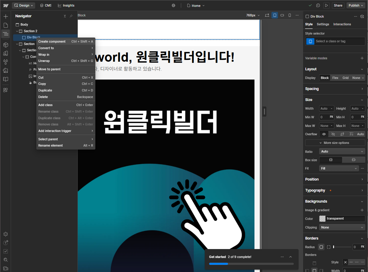 • Webflow 가입하고 Designer 화면 구조 이해